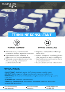 Loe edasiTALLINNA KOMMUNAALAMETI projektide ja planeeringute menetlemise osakond otsib oma meeskonda PEASPETSIALISTI Projektide ja planeeringute menetlemise osakond tegeleb põhiliselt Tallinna linna tehnilise infrastruktuuri objektide, teede ja...