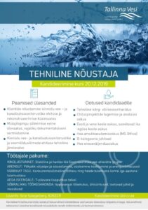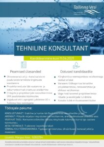 Kandideeri julgesti! CV Keskus tööpakkumine Tallinna Vesi AS Tehniline konsultant, Tallinn